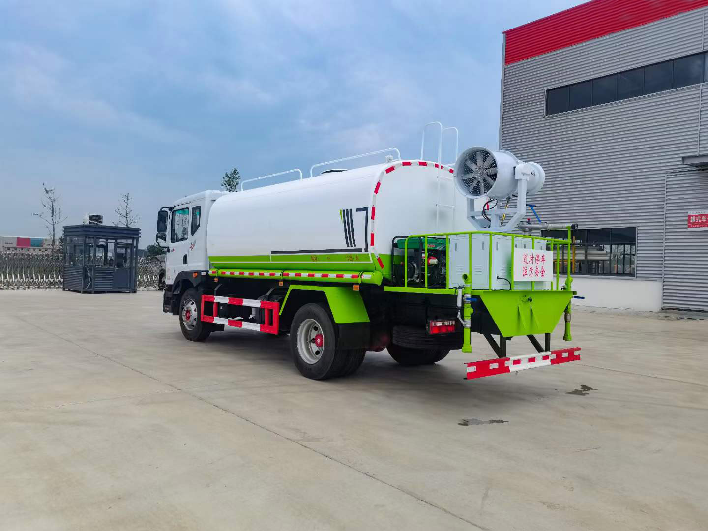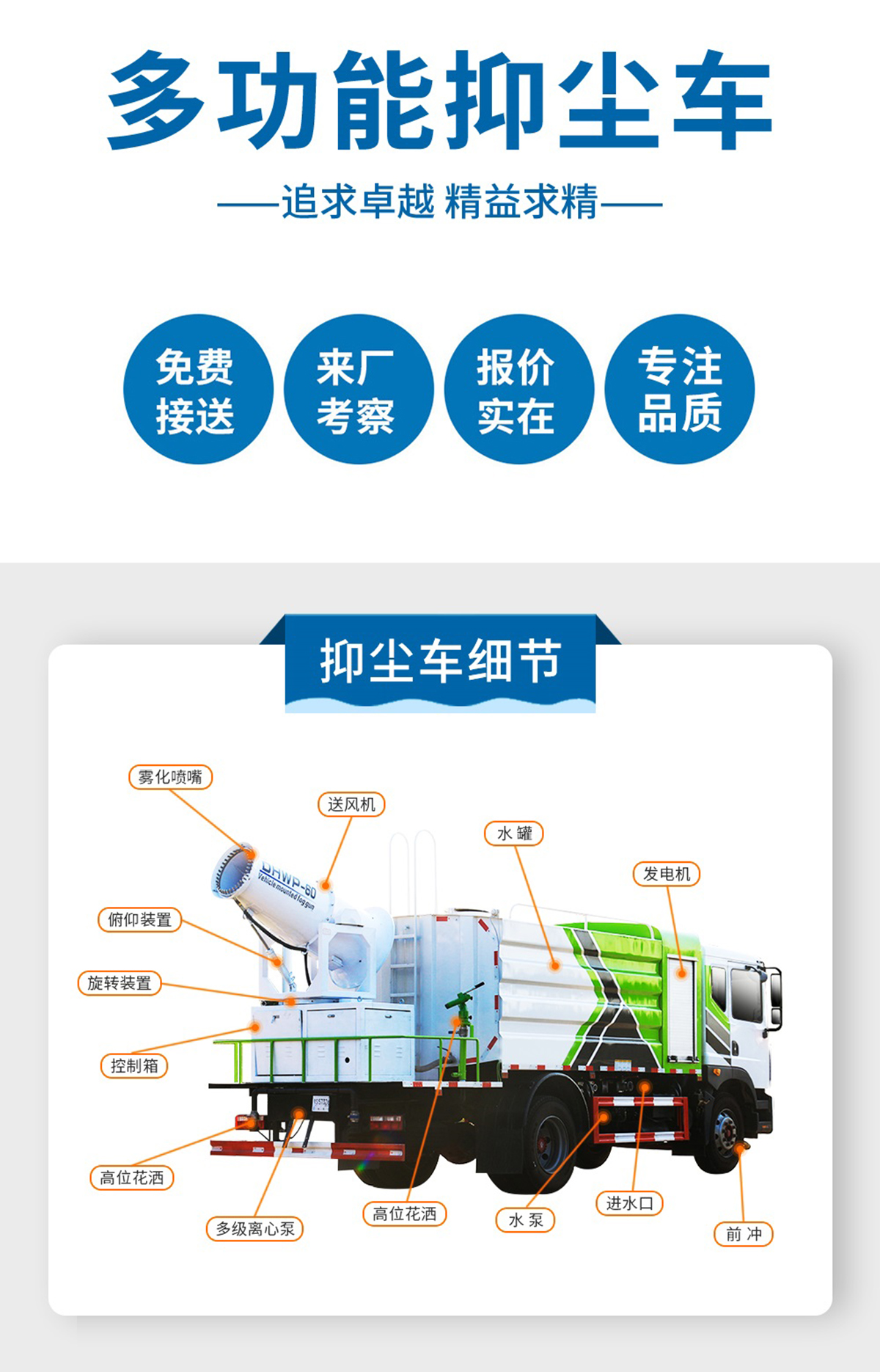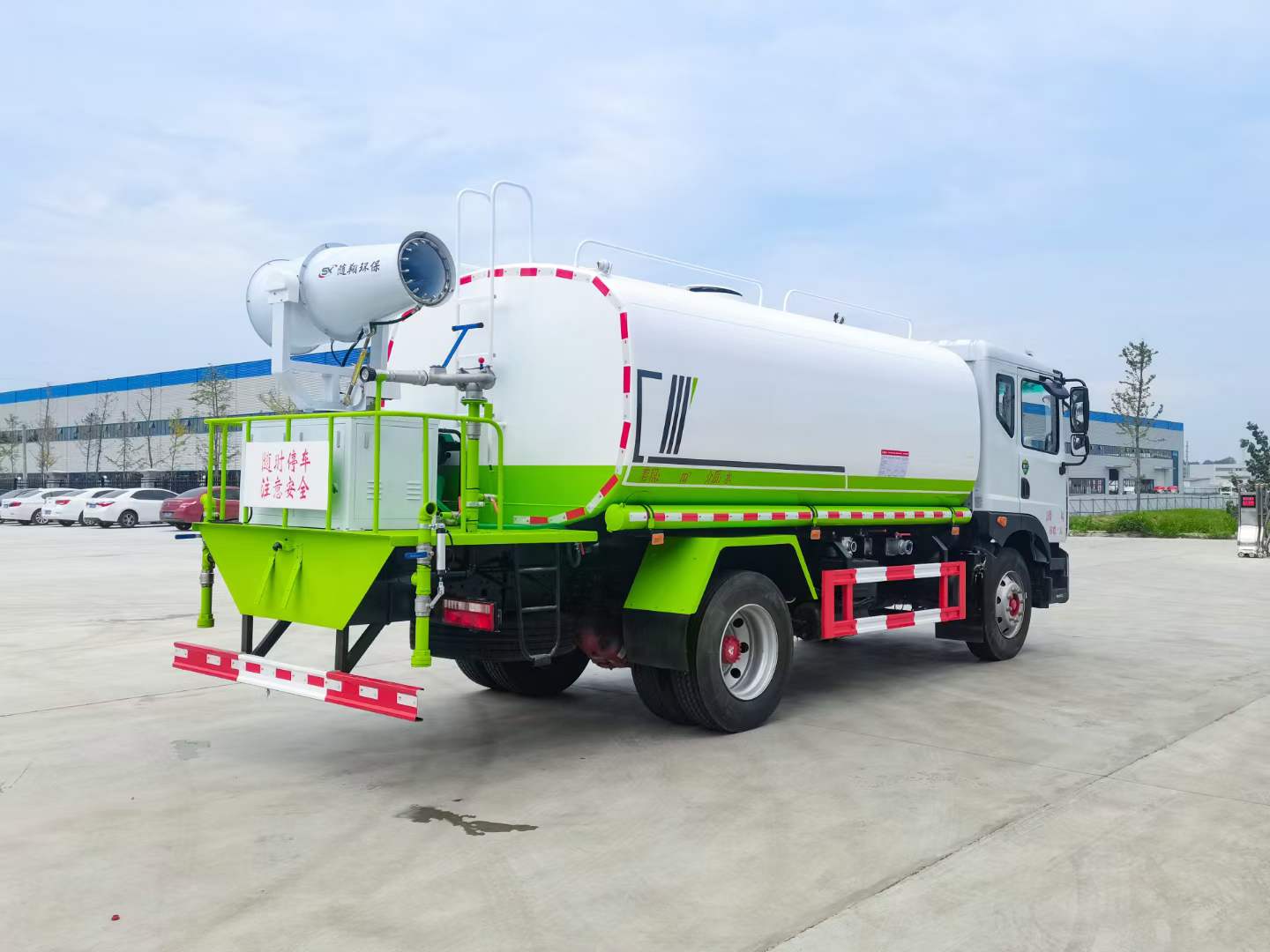 標(biāo)配:前沖、后灑、側(cè)噴、后平臺(tái)高炮、自流閥、消防接頭、濾網(wǎng)、噴頭、帶自吸自排。