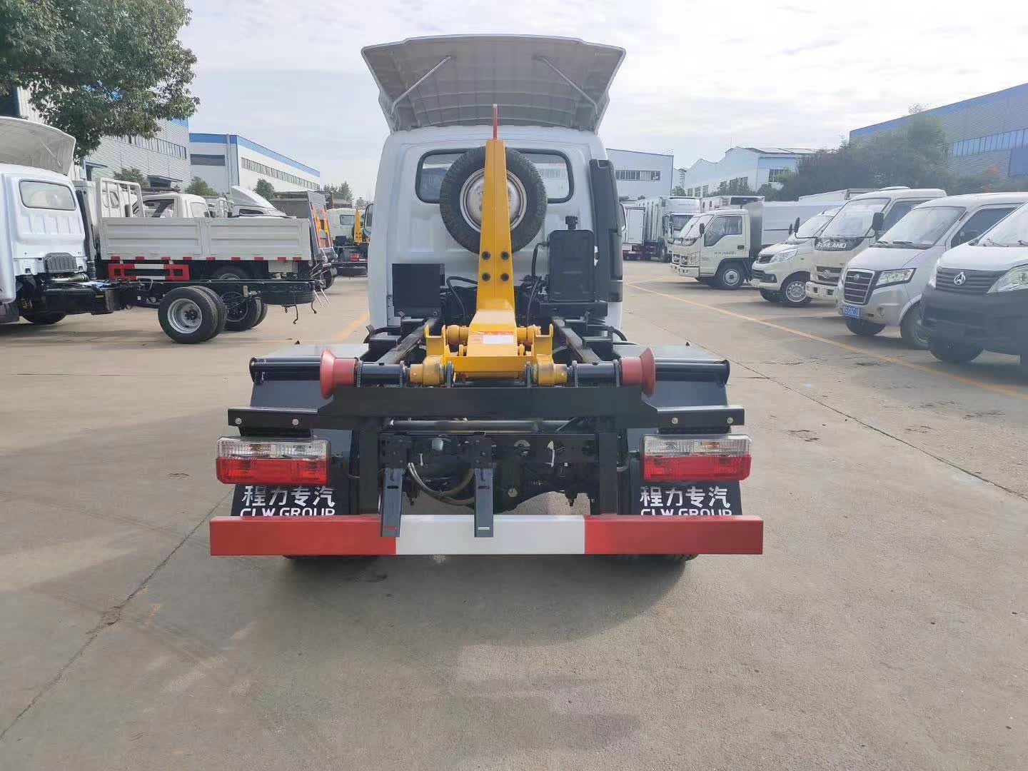 底盤配置:柳機113馬力,1650單排駕駛室,5檔變速箱,175R14真空輪胎【后雙輪】,前后橋1.5/2.5。標配動力轉向,前盤制動,中控門鎖,電動門窗,定速巡航,藍牙電話,LED日間行車燈,空調,預留取力器窗口。 上裝配置:勾臂垃圾車標配:由液壓系統、操作系統、拉臂,組成。舉升油制缸為國內知名液壓件廠家生產的雙作用油缸,多路閥液壓控制,操作員手動控制垃圾廂吊上放下,帶自卸功能,上下一次工作循環時間≤40秒。垃圾箱冷板壓制垃圾箱,帶后門密封圈,帶金屬滾動輪。 |