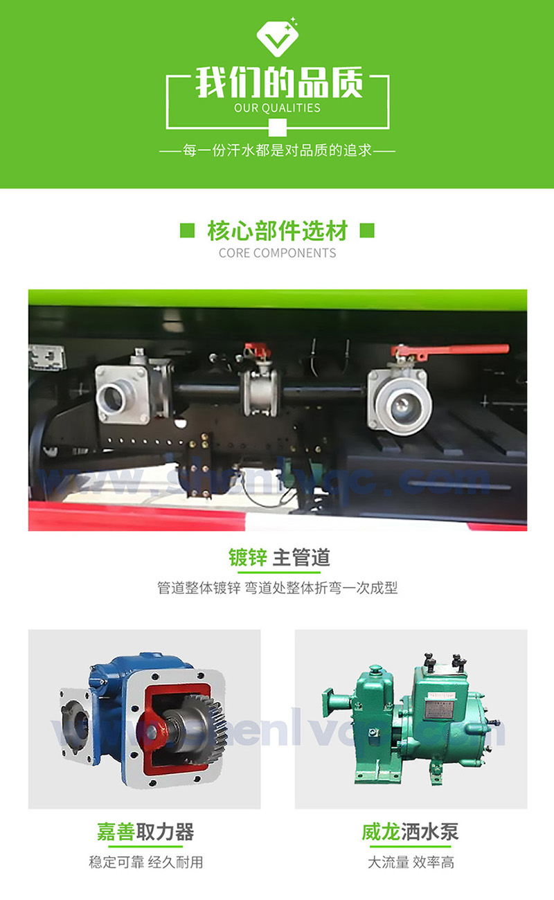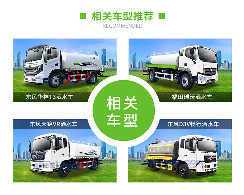 1、大鴨嘴前沖噴頭,萬向前沖球閥;2、選裝氣動(dòng)球閥駕駛室內(nèi)控制;3、選裝自動(dòng)灑水炮;4、選裝LED箭頭燈,長條警燈;5、選裝食品級304不銹鋼罐體;